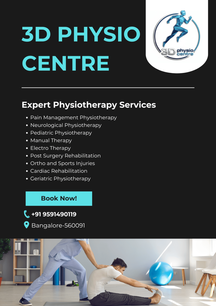 3D Physio Centre is dedicated to restoring health, mobility, and quality of life through expert physiotherapy services tailored to every individual. We specialize in pain management, neurological and pediatric physiotherapy, manual and electrotherapy, post-surgery rehabilitation, orthopedic and sports injury care, cardiac rehabilitation, and geriatric physiotherapy. Our team of experienced physiotherapists combines advanced techniques with a compassionate approach to ensure effective recovery. Understanding the convenience needs of our patients, we also provide professional home physiotherapy services, bringing personalized care directly to your doorstep.
